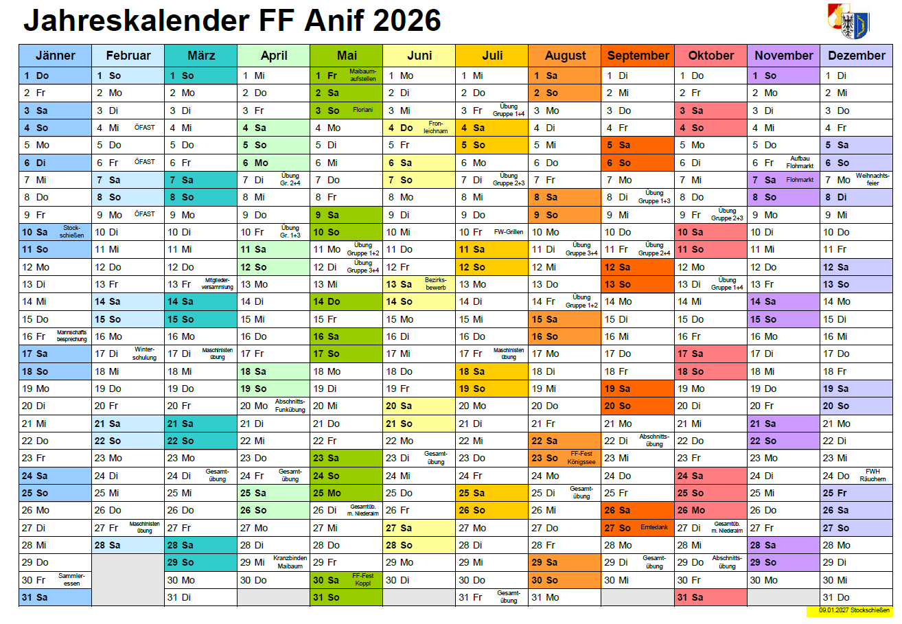 Anbei der Übungs- und Veranstaltungsplan der FF- Anif